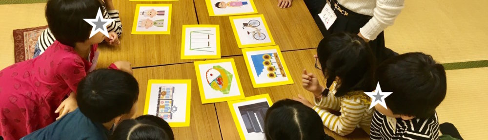 続いて、イラストをもとに、お話を作ってグループで発表する学習をしました。