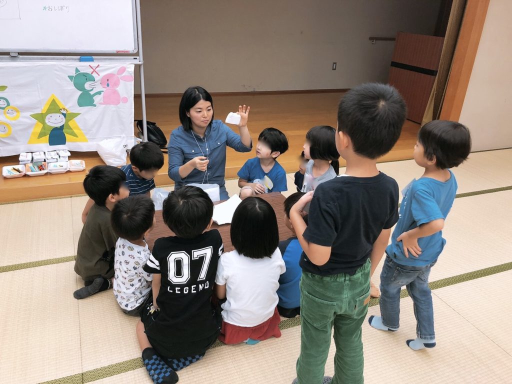 グループごとの自己紹介は、初めての子ども達にはハードルが高いものです。小さな声や首振りなど、ちょっとした意思表示ができていれば、オッケーです♪何度か参加いただくうちに、自己紹介が上手になってくるものです( ^ω^ )