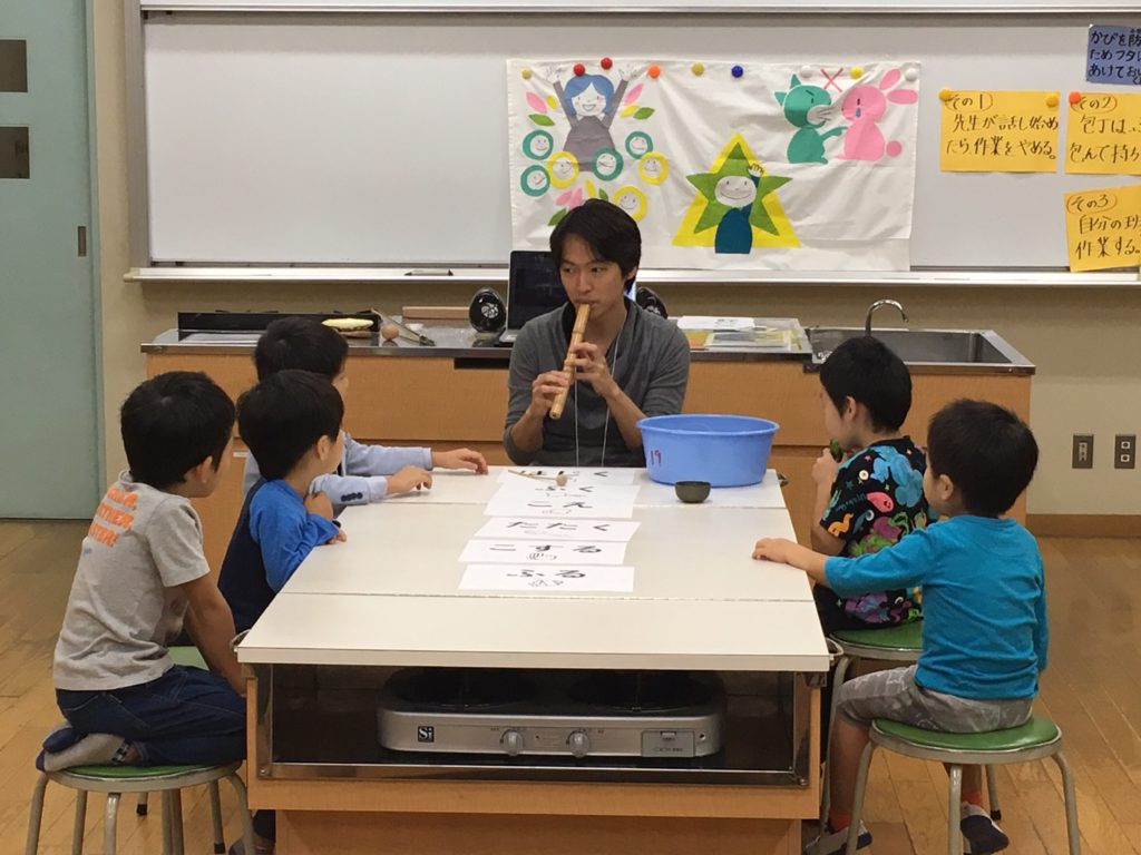 まずは、世界の様々な地域の音楽を聴き、どのように音が出されているのかを考えるクイズを行いました。「声」、「叩く」、「はじく」など、音の出し方はたくさんありますが、みんな見事に聞き分け、正解していました。