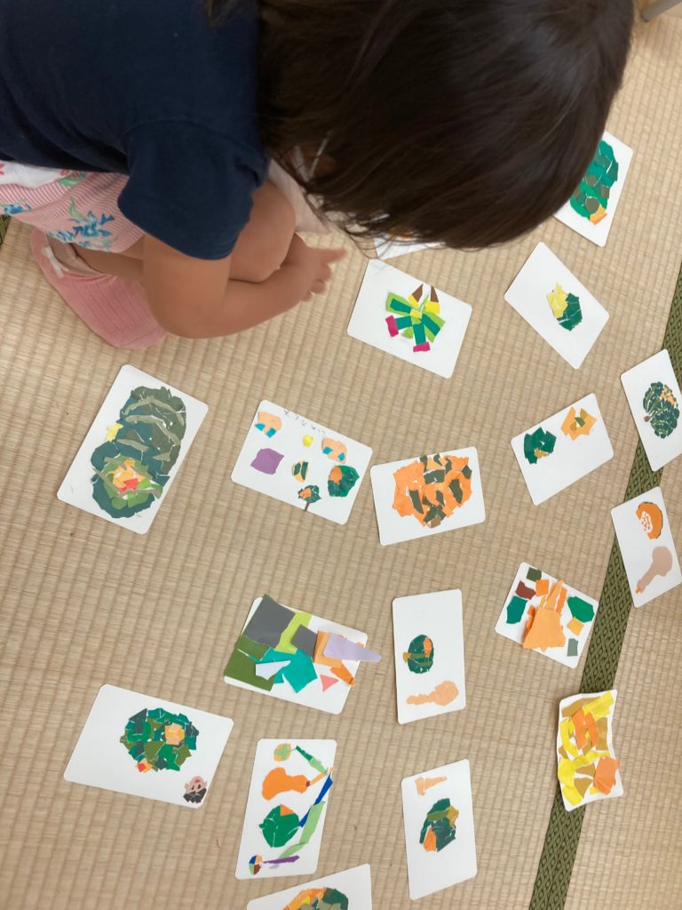 色画用紙を見て、そこからどんなお野菜を連想するかな?という、クイズ付きでした。
