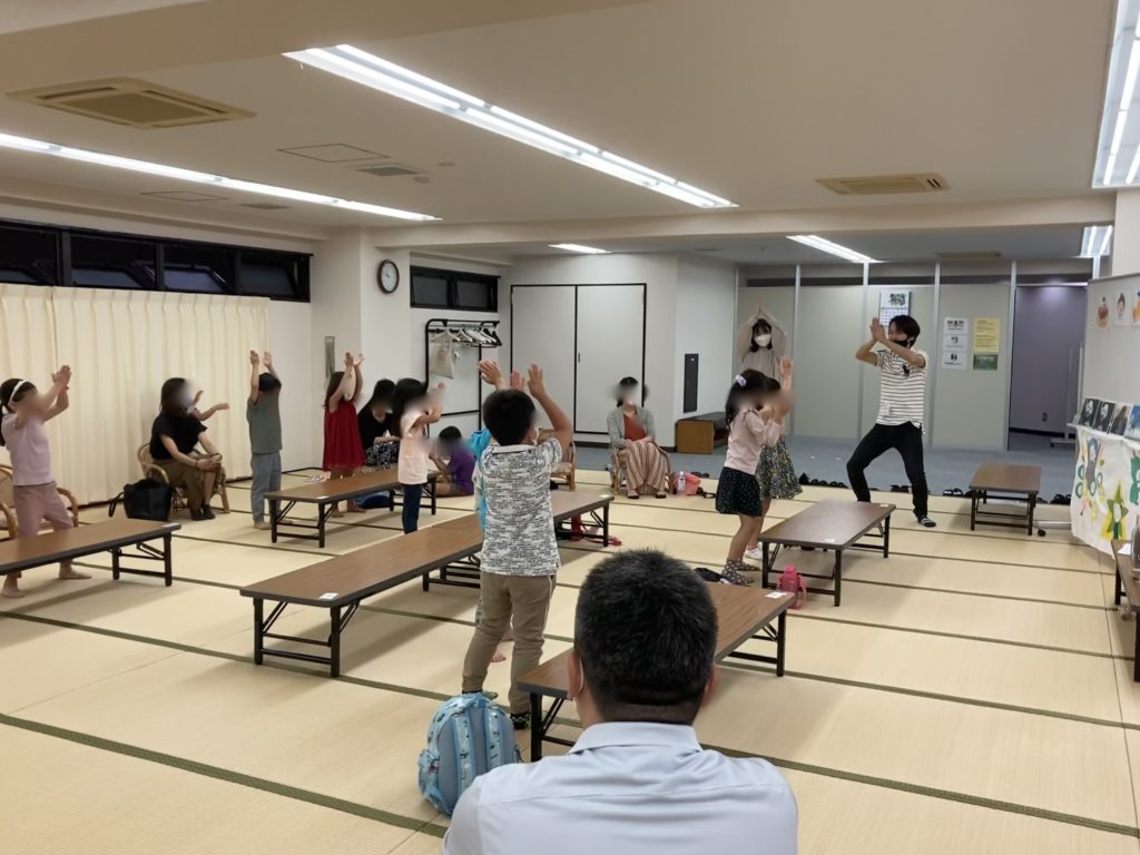 手拍子に慣れた後は、足踏みを入れるなどのボディパーカッションを加えました。