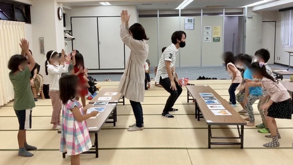 しかし2小節目だけは同じ絵カードなのでみんなの動きが揃います。