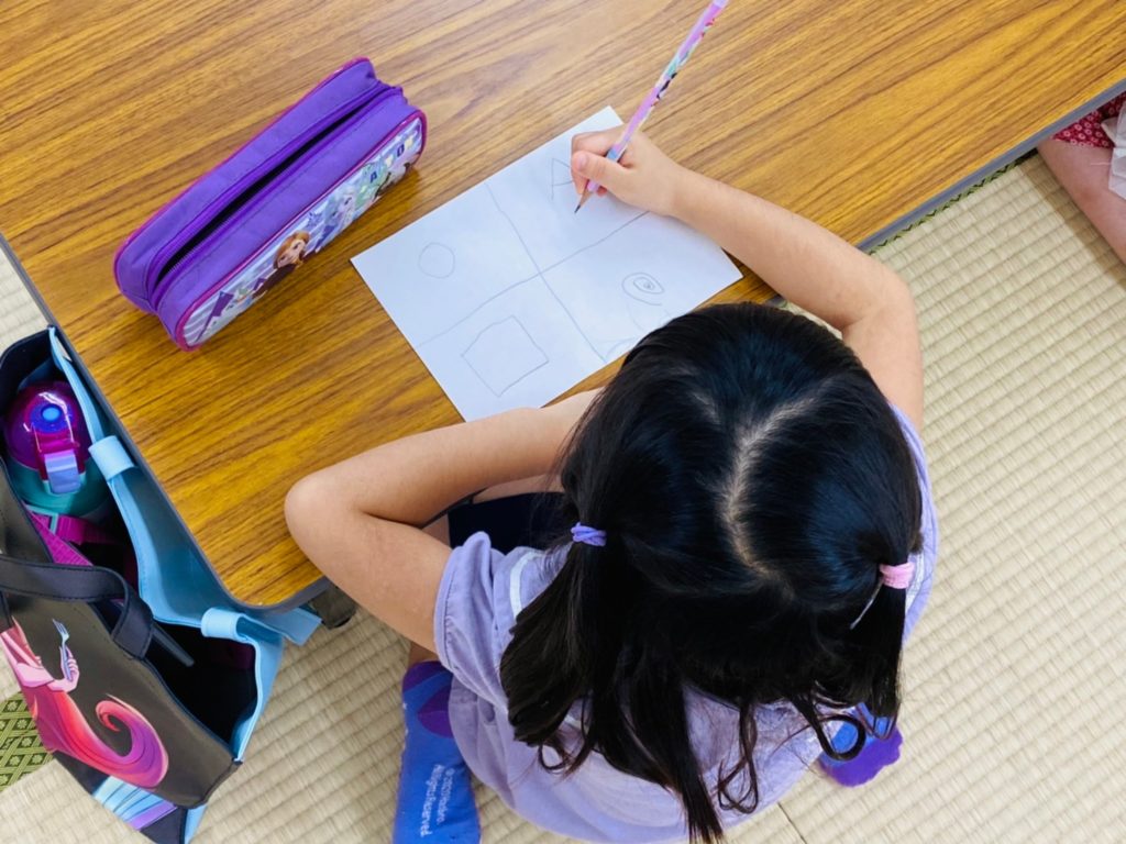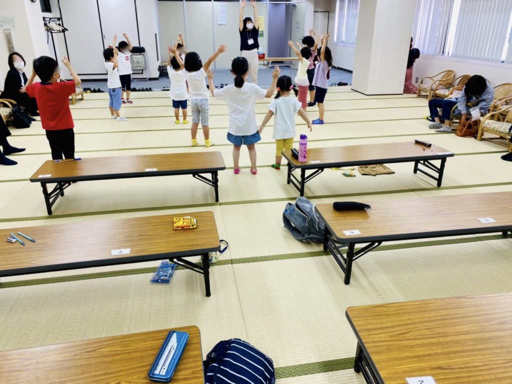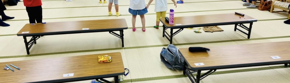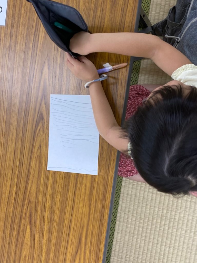 こどもたちは自分の筆記用具を机の上に出して、やる気モードでスタートすることができました。