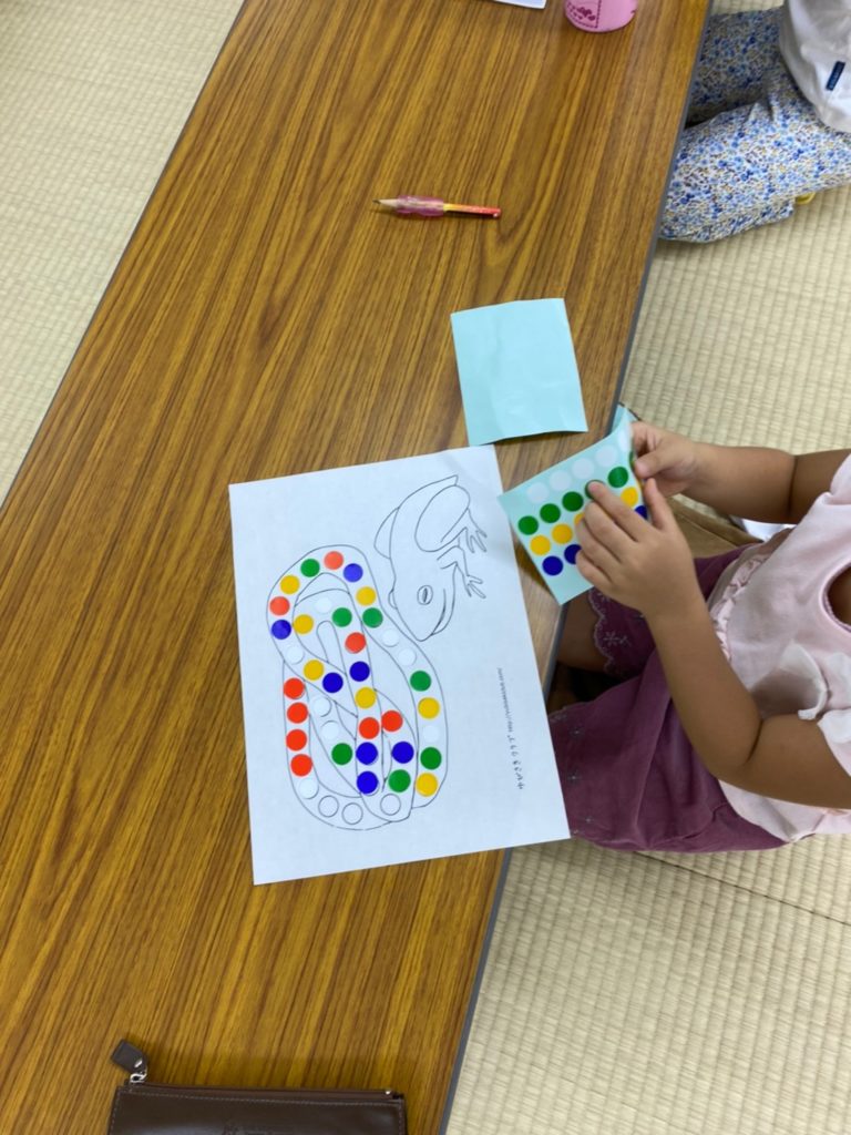 折り紙・丸シール貼り・半紙を使った天の川作りの3択で、好きなものに挑戦しています。
