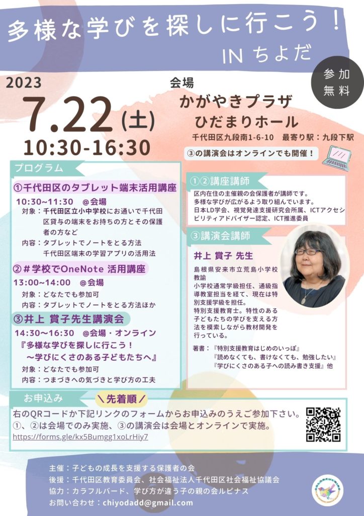 ①7月22日(土)「多様な学びを探しに行こう!」@かがやきプラザ ひだまりホール