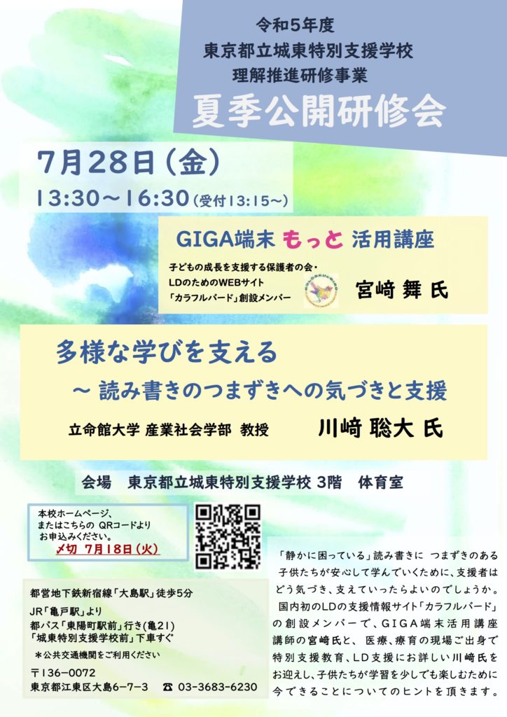 ②7/28(金)城東特別支援学校のLDに関する夏季研修