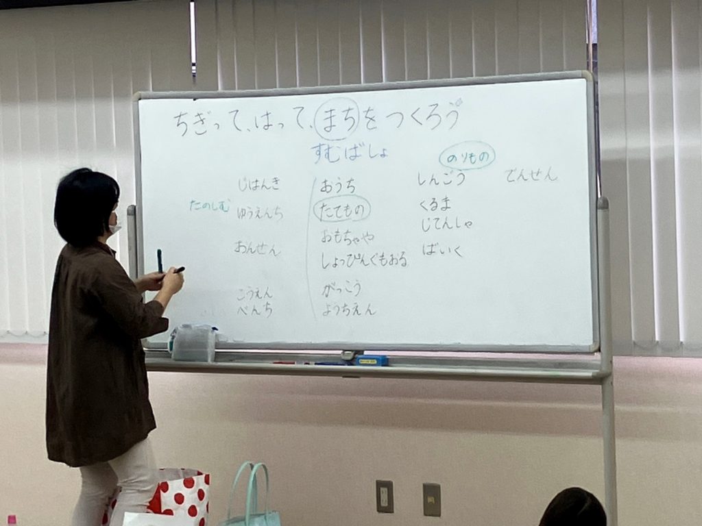 まずは、町のイメージ共有から。町にあるものをたくさん発表してくれました!
