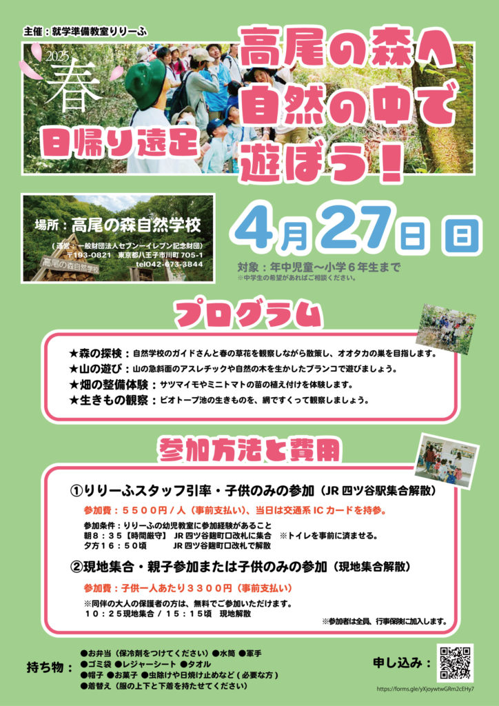 郊外に遠足に出かける特別企画となります。
