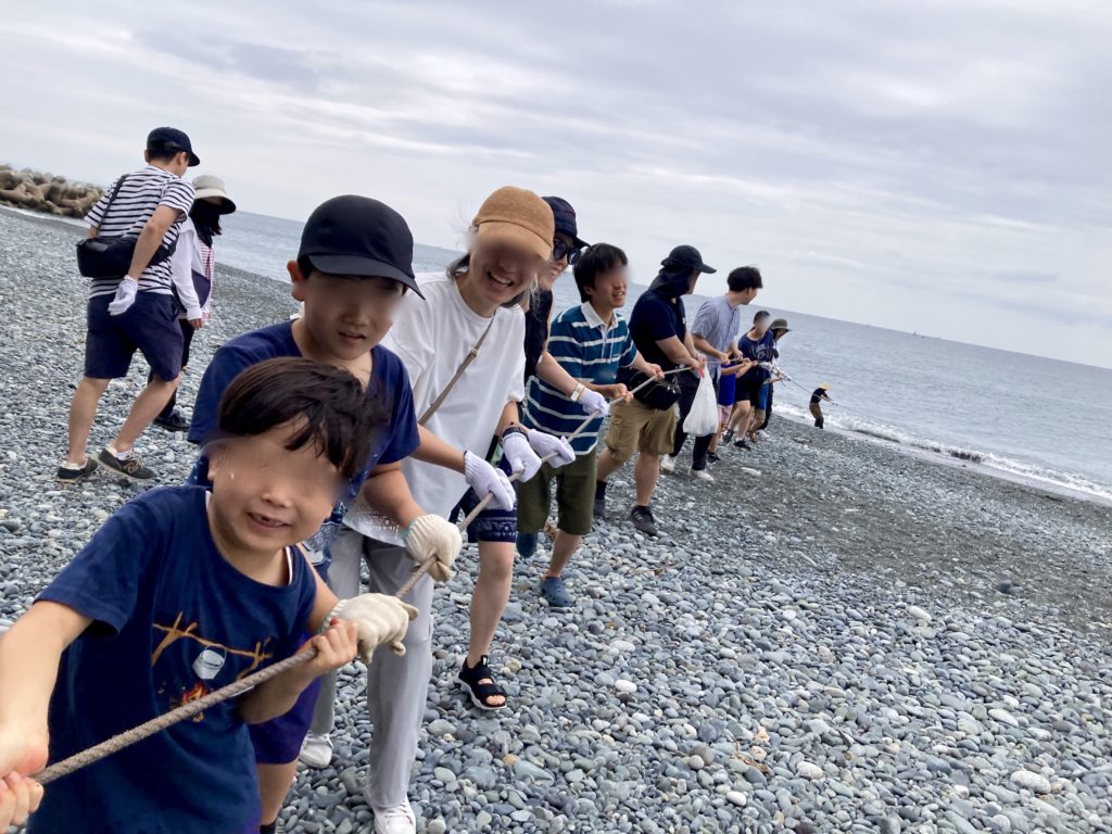 漁師さんが海に仕掛けてくれた網を、砂浜にいるみんなで引っ張り、引き上げます。