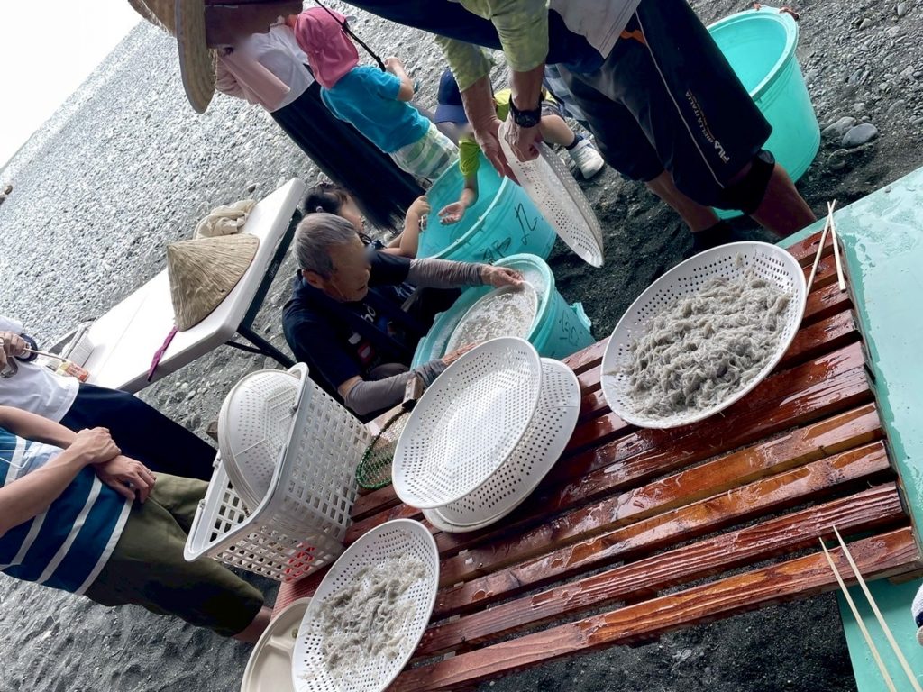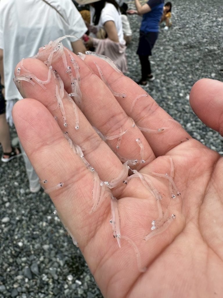 大人も子供も、取れたての美味しい生シラスをその場で実食!天然の塩味がちょうどいい。
