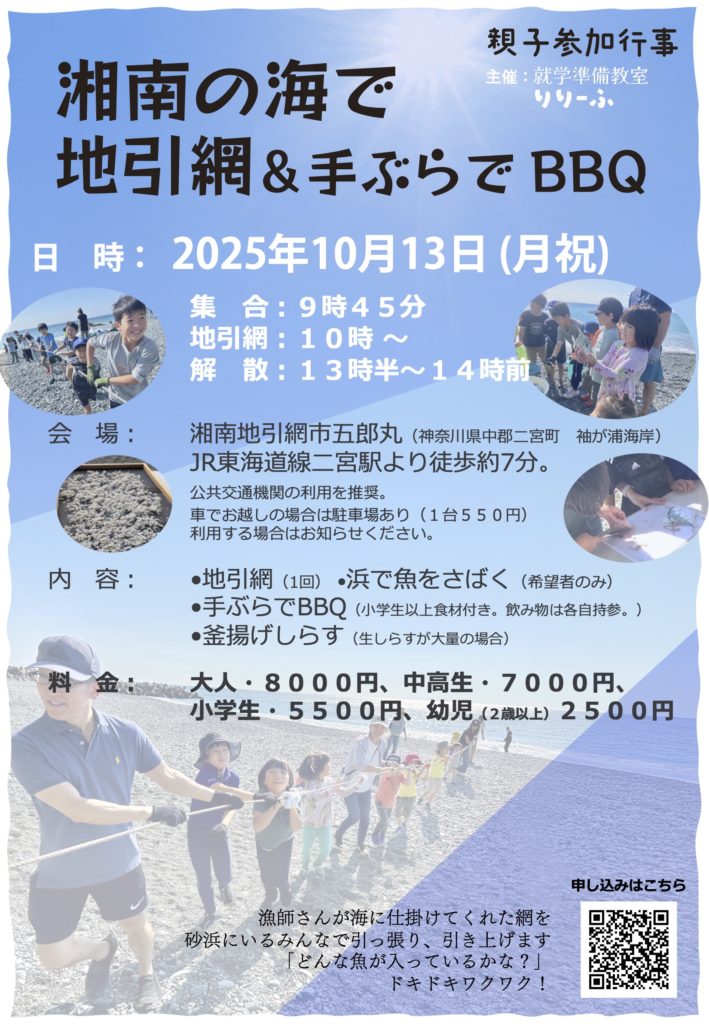 集合:9時45分 地引網:10時 解散:13時頃〜14時(自由解散です)