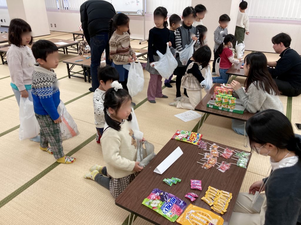 見た目だけで決めるとなると、どの袋にしようか迷います。そんな中でも、子供達は良い目と気付きで、「ぶどうの飴の袋が入っているのが見えるから、Aの袋がいいです!」のように、自分なりの理由を見つけて袋を選んでいました。