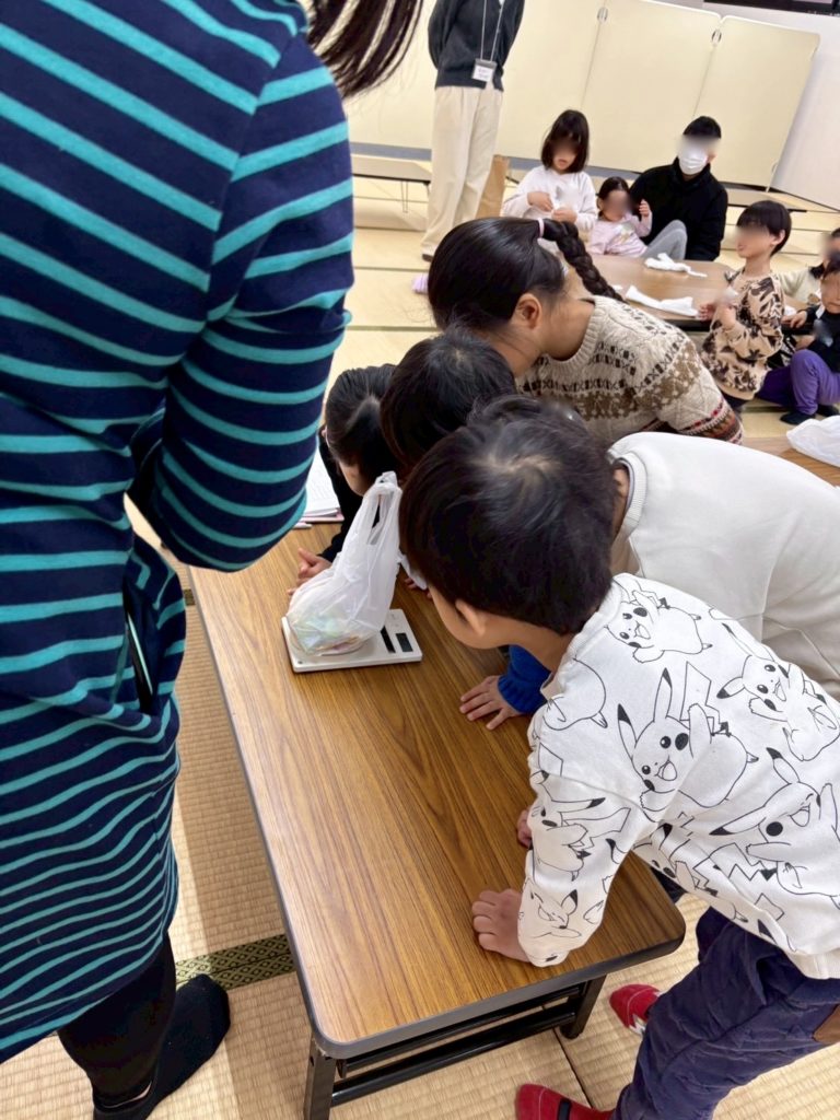 数を数えて比べる以外にも、比べる方法はないかな?と聞くと、重さを測る!という回答も出ました。