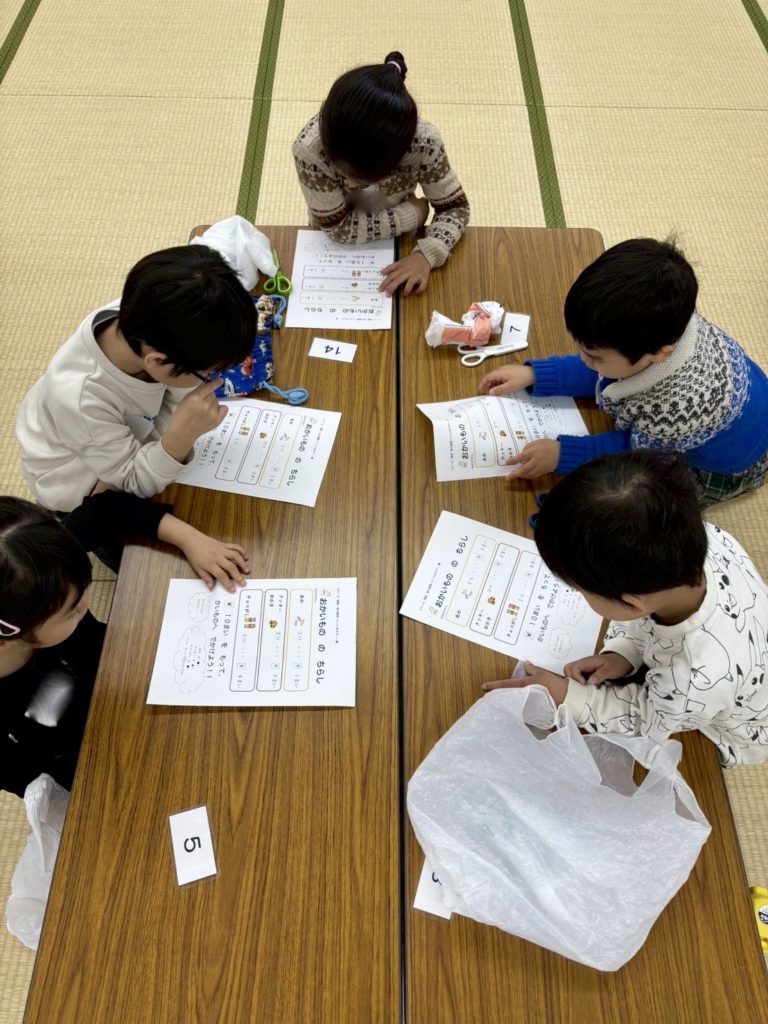 新年はじめの授業は、数の基礎ということで、算数につなげるための学習をしました。