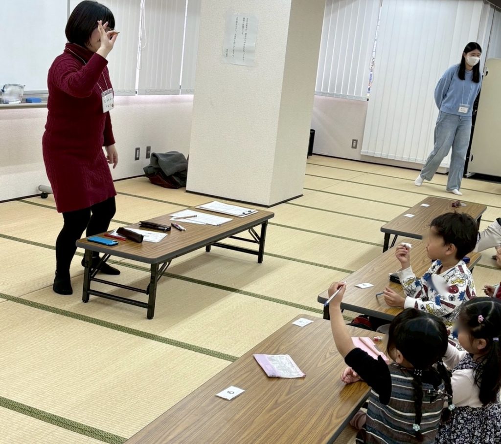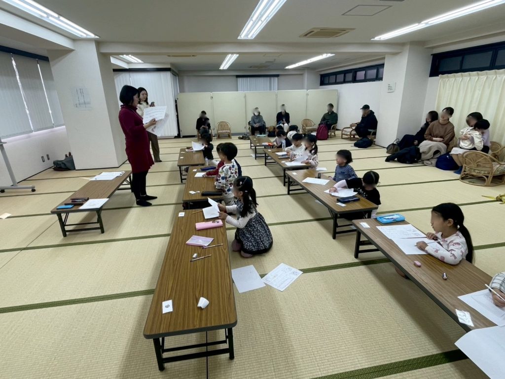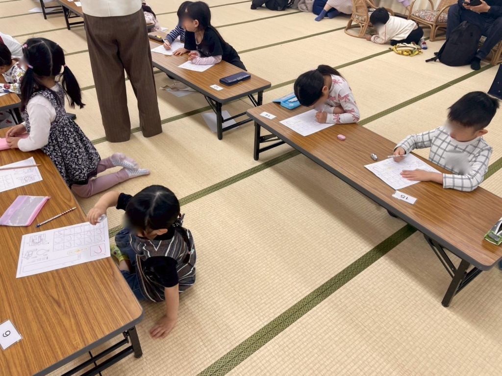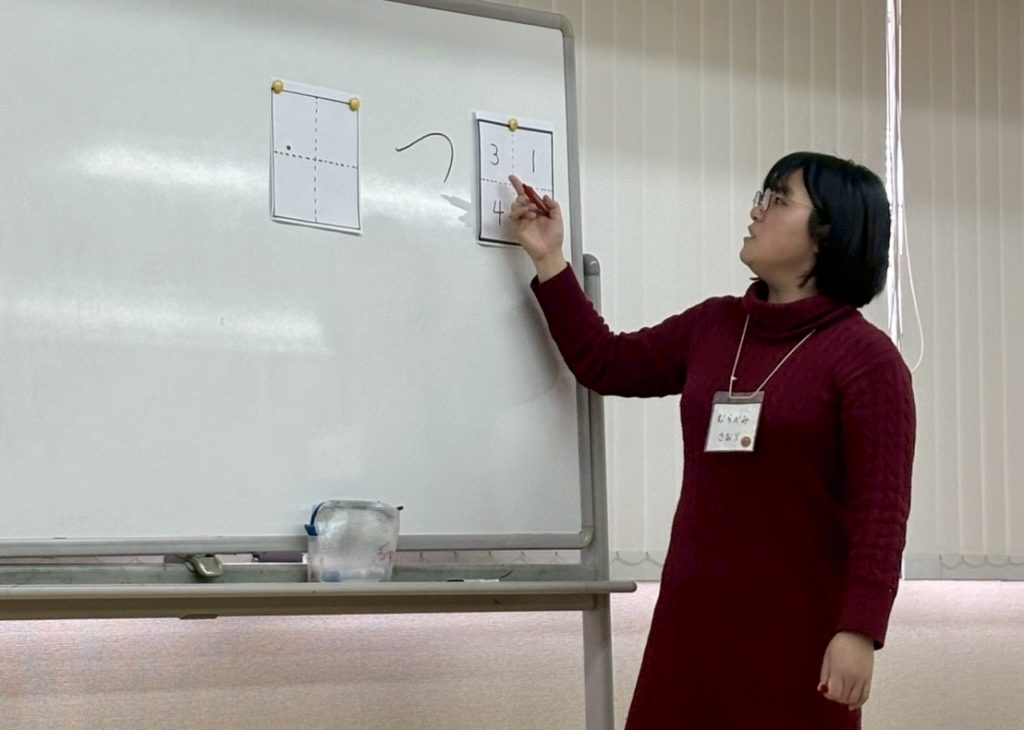 ひらがなを学ぶ際の、マスの使い方を学びました。字形を整えるために、どの辺りから書き始めるのか、どのように運筆させていくのかイメージを持つことが大切です。