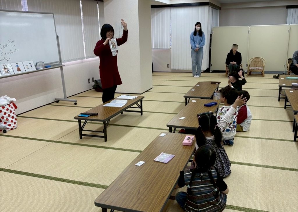 次は、手遊びや鉛筆の持ち方の練習です。
